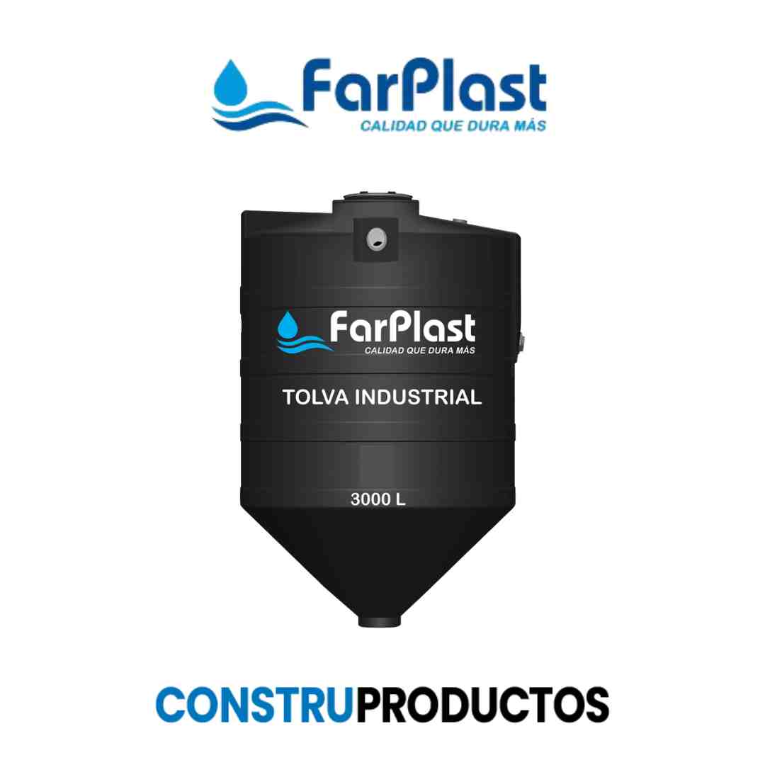 La Tolva Industrial FARPLAST de 7000 litros es una solución confiable para el almacenamiento y descarga de sustancias químicas y materiales sólidos, fabricada con polietileno 100 % virgen de alta densidad (HDPE, grado industrial) y protección UV 12. Su estructura resiste condiciones ambientales de –10 °C a 60 °C, manteniendo sus propiedades físicas y químicas a lo largo del tiempo.